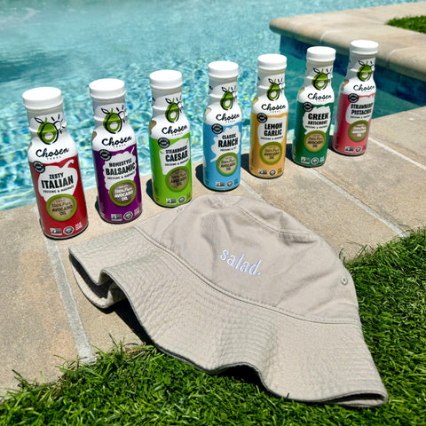 This sampler pack features all seven of our delicious dressings, plus a limited-edition Salad Bucket Hat to top it all off. Just shake, drizzle, and devour.